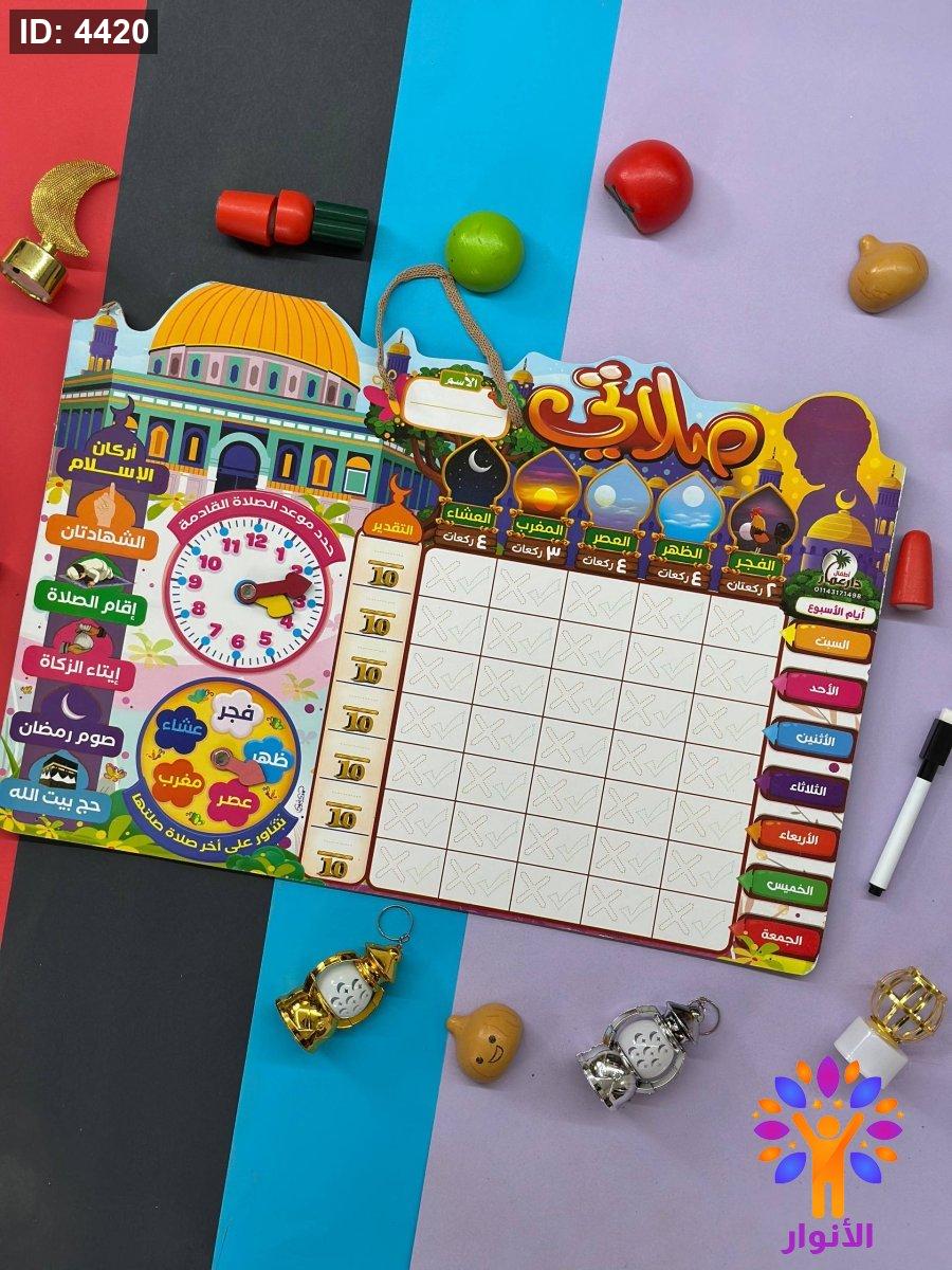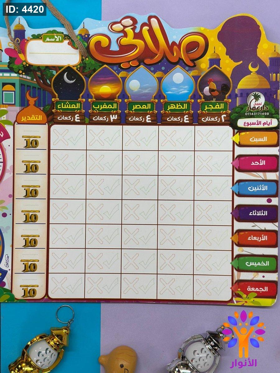 تعليقة صلاتي - اكتب وامسح - لوحة كرتونة لاوقات الصلاة ولمتابعة الصلوات